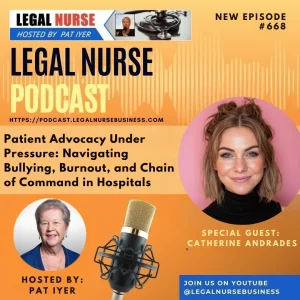 Welcome to another insightful episode of the Legal Nurse Podcast with your host, Pat Iyer. Today, we’re diving into one of the most critical—and challenging—roles nurses play: patient advocacy. Pat Iyer is joined by Catherine Andrades, a seasoned critical care nurse, rapid response team member, ballet instructor, and self-proclaimed houseplant negotiator. Together, they explore not…